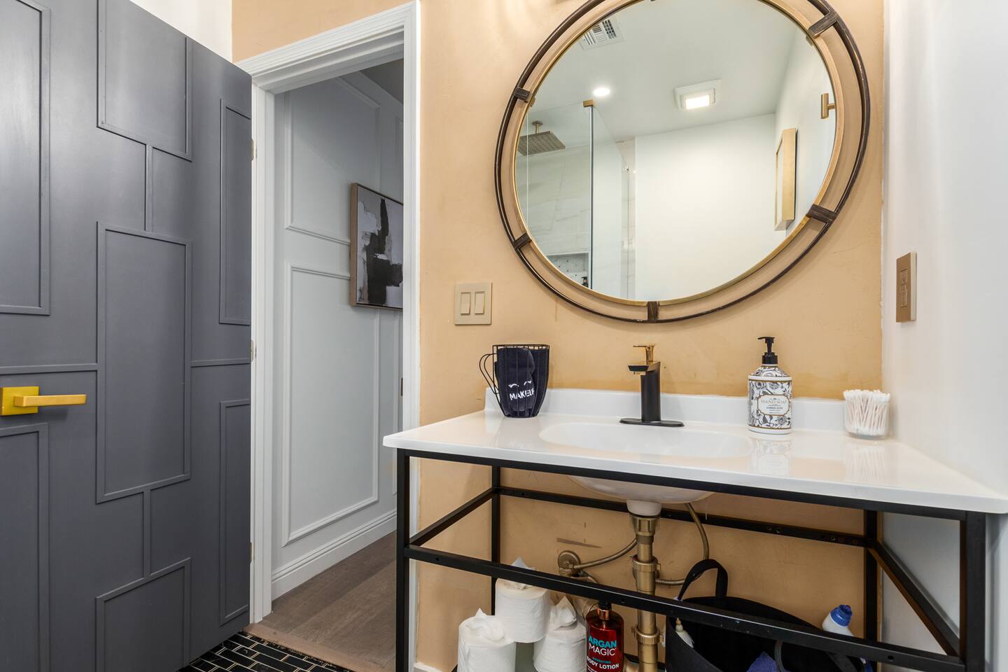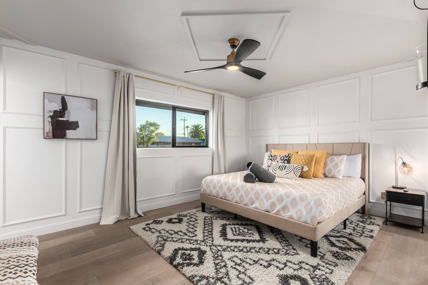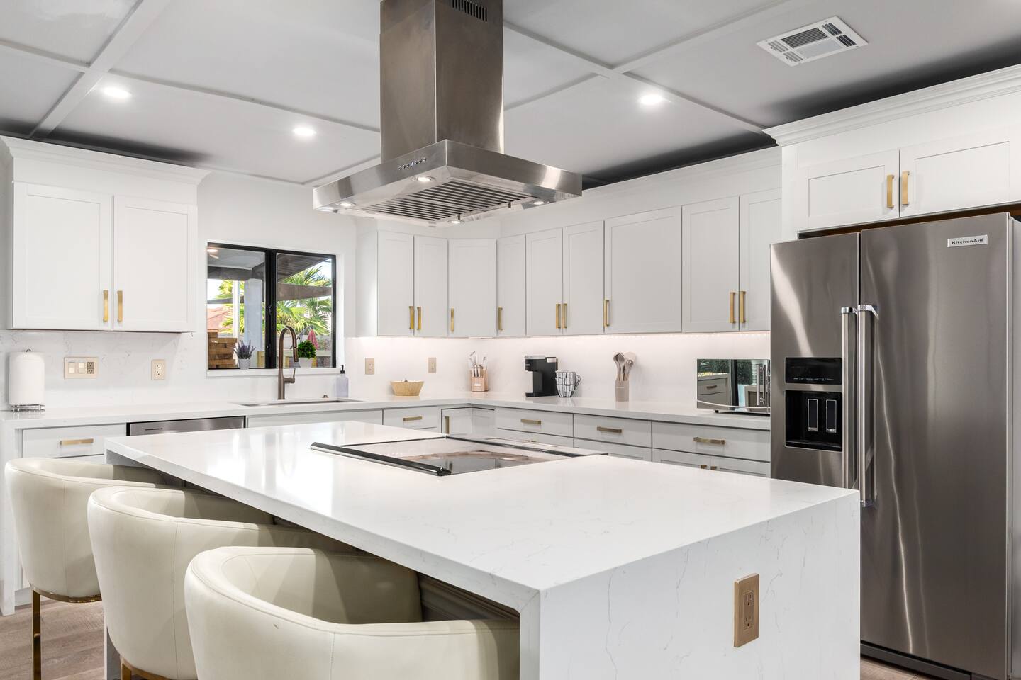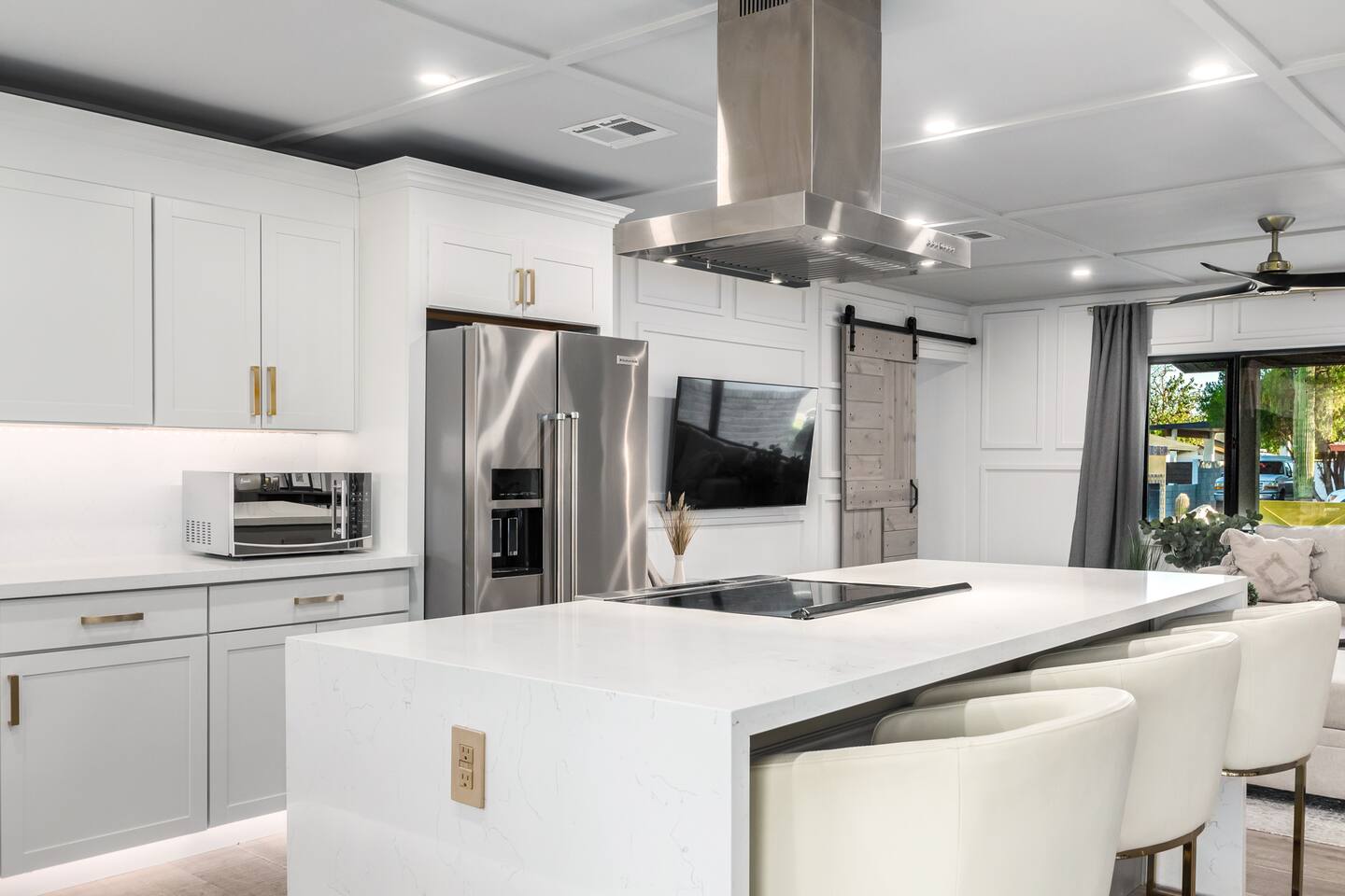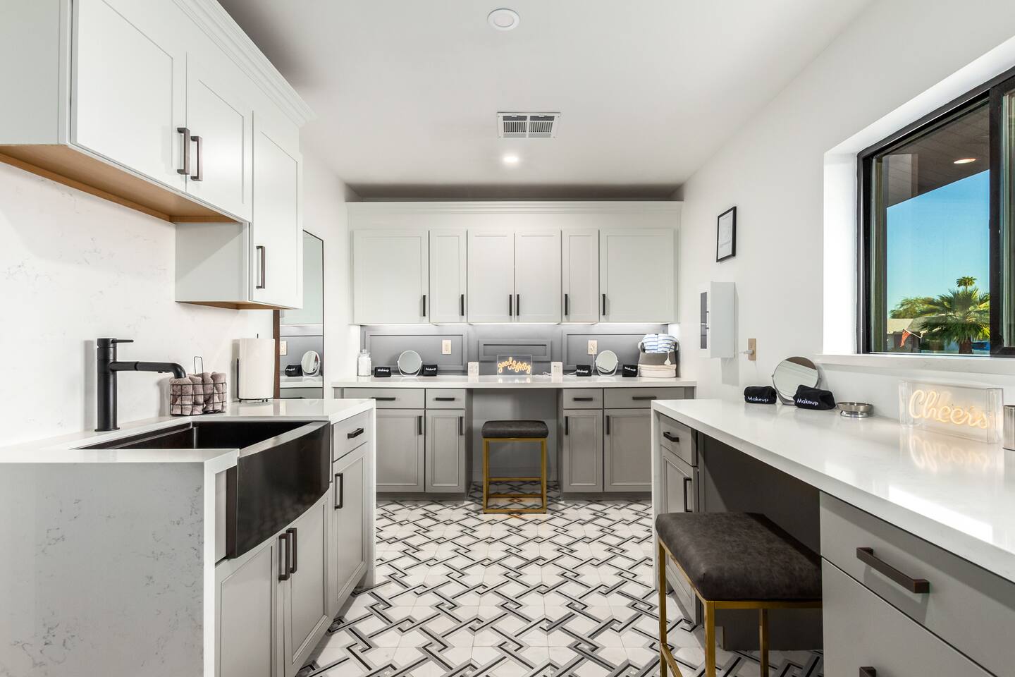 Chic and dazzling, every room will be your favorite. A modern open concept living makes it easy to relax and entertain. Two double sliding doors seamlessly unite inside with outside. The backyard oasis is outfitted with a "lounge couch", chaise loungers, giant sun-shade, backyard games, grill, wine/beer fridge, and additional seating areas. Inside, you'll find designer touches throughout. A spacious primary bedroom with en-suite bathroom is situated just off the main hallway. Three additional bedrooms, (all equipped with luxe finishes and bedding) are ready for your guests! The incredible living space features a wet bar with TV, oversized dining table, incredible chef's kitchen, and cozy living space. Smart TV's make this home "smart" to enjoy all of your favorite entertainment. This home's unbeatable location is just minutes from the best restaurants, nightlife, and shopping that Scottsdale has to offer. Catch an Uber or a scooter and you're back home in minutes. *Pool can be heated upon request (November to mid-May) with a minimum length of two days. Heating fee will be $200 for the minimum, and any additional days will be $100 per day. This is a very large pool and takes about a day to get up to temp, because of this we require a 2 day minimum. The Sleeping Arrangements: Primary Bedroom: (Soak up the Sun - Sleeps 2) -Comfortable King Bed with luxurious bedding -Plentiful closet storage + clothes hangers -55" mounted TV -Ceiling Fan -En Suite bathroom with luxe walk-in shower Queen Room 1 (Grateful Gray - Sleeps 2) -Queen Bed -Closet + Hangers -Ceiling Fan -Extra bedding, blankets, and pillows Queen Room 2: (Bohemian Blue - Sleeps 2) -Beautiful queen bed -Closet with hangers -Ceiling Fan -Extra bedding, blankets, and pillows Twin Room (Desert Destination - Sleeps 2) - 2 Twin XL beds -Closet with hangers -Ceiling fan -Extra bedding, blankets, and pillows Bathrooms: -Hotel Style toiletries - Soap, shampoo, conditioner, body wash, lotion -Make up towels -Hair Dryer -Kleenex Kitchen: -Keurig coffee machine allows for pod and drip coffee -Complimentary Keurig coffee pods, tea, creamer, sugar -Toaster/Microwave -Pots and Pans, bakeware, serving ware -All dinnerware, cutlery, and drinkware -New dish sponge, cleaning supplies, trash bags, dishwasher pods Pool/Backyard: -Giant Sun-Shade providing ample shade throughout the day -Umbrella over oversize "lounge couch" -Bistro Lights on Palm and Throughout Exterior -BBQ with Utensils and Bar Top -Yard Games (Cornhole, Ping Pong, Jenga) -Chaise Loungers (2 sets of 2) -Barstool seating around the BBQ Island Pool Area -Heated (up to 84 degrees, at an additional cost if wanted) -Gated pool deck -In Pool Lounge Chairs (BOTE) -Pool Towels -Bistro Lights -Pool Loungers -Large Sun Sail with plenty of shade -Umbrella Getting Ready Room (Laundry Room): -Extra large washing machine -Extra large dryer -Detergent and dryer sheets provided -Iron -Full length mirror -Additional make-up mirrors, washcloths, stools, etc. to be your most beautiful self Garage: -Ping Ping Table -Cornhole Boards -Jenga -Contemporary Lighting -PARKING! Extra long driveway with parking in rear We provide all the essentials so you can pack lighter (toilet paper, paper towels, hand soap, bath towels, shampoo, pool towels, mirrors, sheets and bedding and more). -Pack n Play and High-Chair at the listing at all times for for the little ones!! Guest access Access to the entire home except for owners closets.. - Washer and dryer in laundry/getting ready room (complimentary detergent and fabric softener) -This property and all guests must comply with AZ Senate Bill SB 1168, City of Scottsdale ordinance Sections 18 - 150, 18 - 121 and all state and city regulations. - Access to the property will require a security code which will be provided 24 hours prior along with check-in instructions. There is one security camera for the pool equipment in the backyard behind a wall. This only records the pool equipment so we can monitor for any issues remotely. - Scottsdale Short Term Rental License # 2025898…